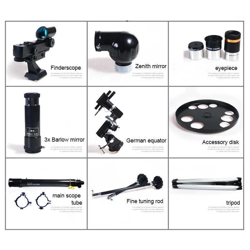 MONTAJE MANUAL ALEMÁN ECUATORIAL: navega por el cielo con nuestro telescopio refractor. Cuenta con una montura Ecuatorial alemana con una varilla de altitud a cámara lenta para una orientación suave y precisa. Ajuste la varilla a la posición deseada, luego sujétela fácilmente apretando la perilla cruzada.