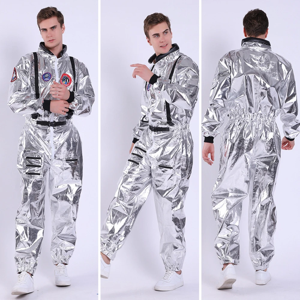 Disfraz de astronauta plateado para adultos y niños, traje espacial, monos, fiesta de Halloween, regalo de cumpleaños