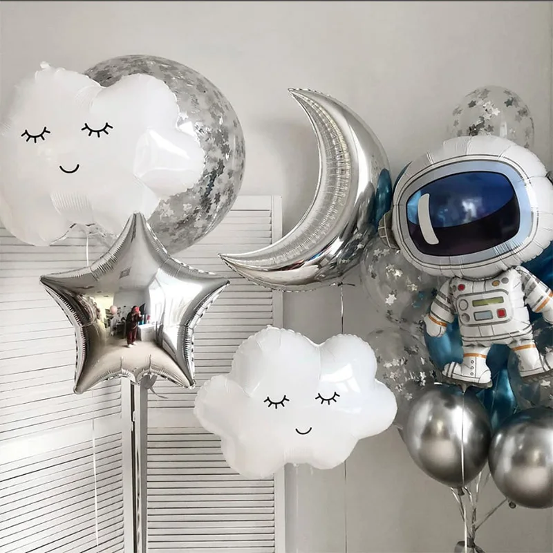 Cohete de astronauta espacial nubes blancas Decoración de cumpleaños globos Baby Shower fiesta favores niños bautizo fiesta decoración suministros