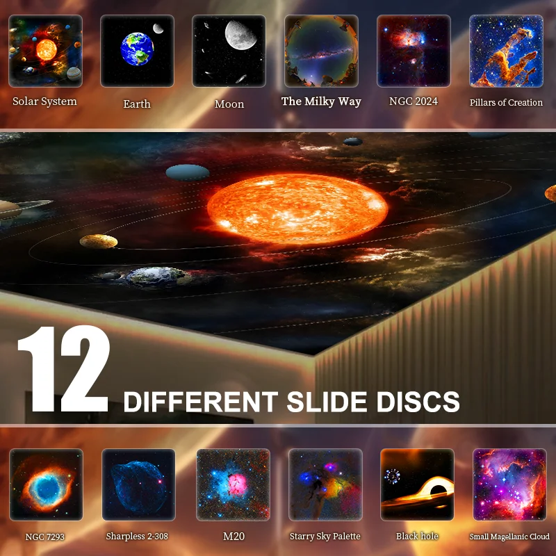 Característica:Rocket Astronaut Galaxy Proyector 12 en 1 Proyector de planetario: 12 escenas de visualización:1. El Sistema Solar te lleva a experimentar un mundo virtual diferente. Acercarse al sistema solar, la Vía Láctea, los planetas celestiales, las profundidades de los bosques y más puede despertar la imaginación de un niño.2. Tierra 3. Luna 4. Vía Láctea…