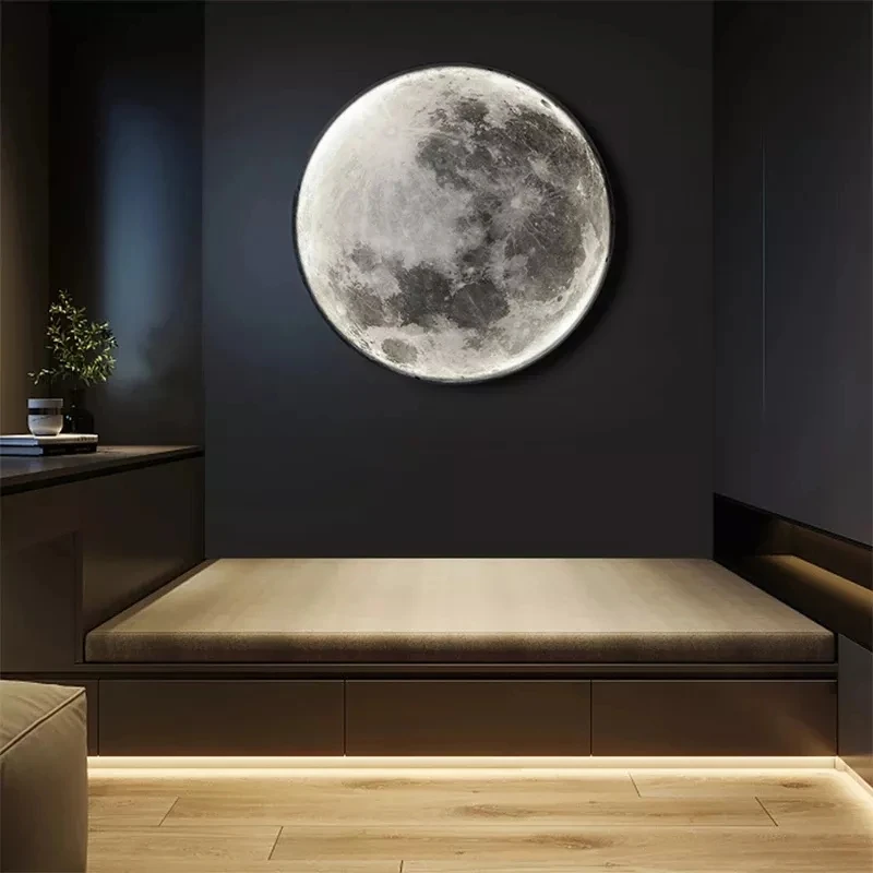 Moderno lujo creativo pasillo Mural arte sala de estar Fondo Decoración Luz dormitorio lámparas de noche Luna lámpara de pared