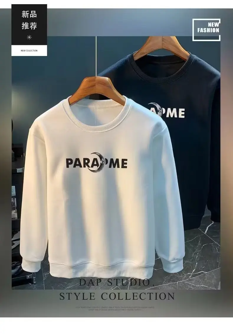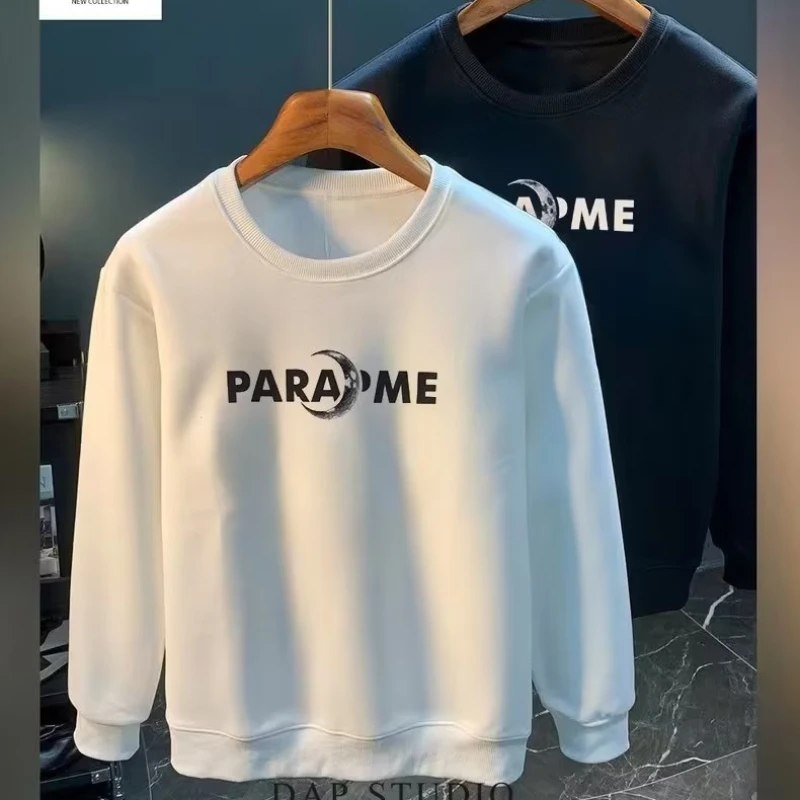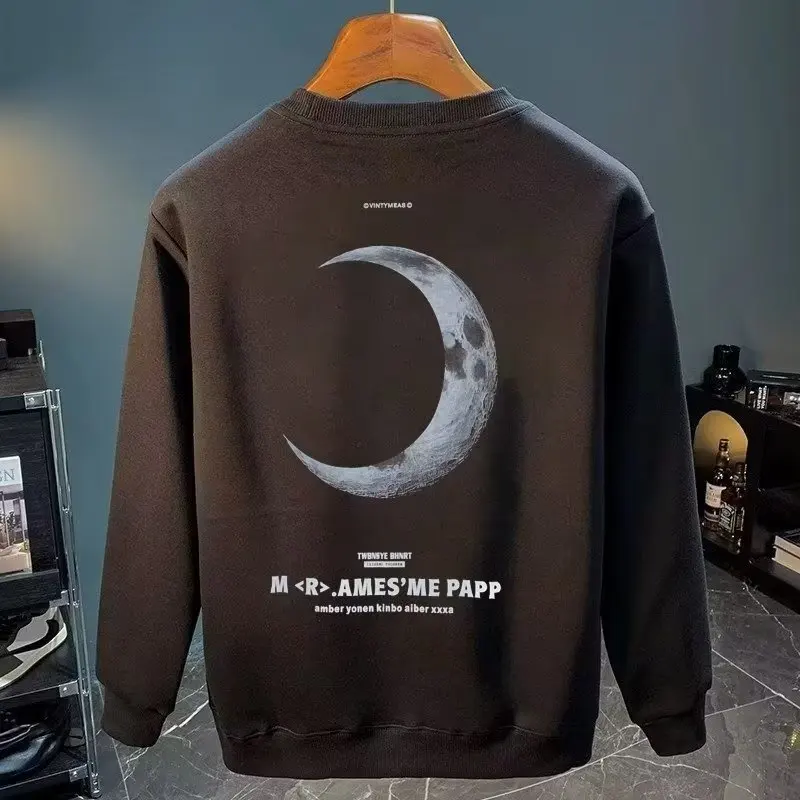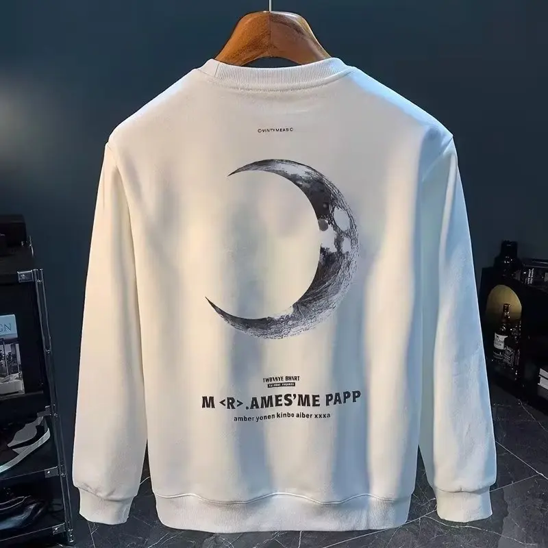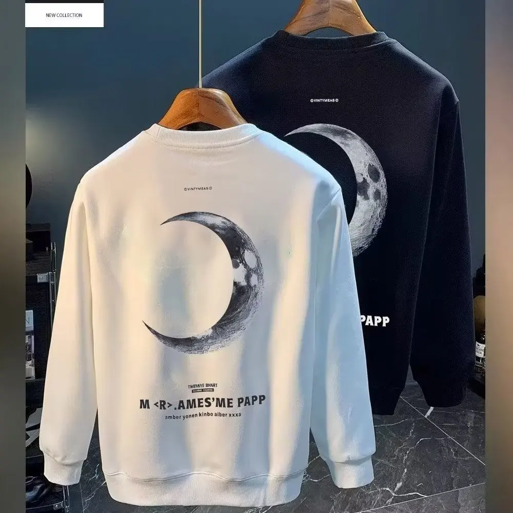 Sudadera de algodón para hombre, camiseta de manga larga japonesa, Top con estampado de Luna blanca de alta calidad, Camiseta con cuello redondo, ropa nueva de otoño